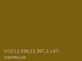 XYZ 12.539,12.397,2.147 Color is a dark orange color and the nearest color is Yukon Gold #7b6608. Hex code #7d5e0e and RGB value is rgb(125,94,14). In RGB color space, this color is composed of 49% red, 37% green, 5% blue, In CMYK color space, this color is composed of 0% cyan, 25% magenta, 89% yellow , 51% black , In HSL color space, this color has a hue angle of 43° , 80% saturation and 27% lightness.