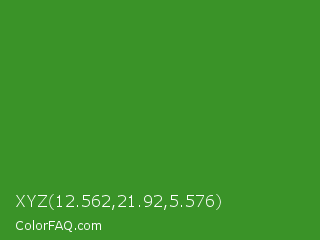 XYZ 12.562,21.92,5.576 Color is a normal green color and the nearest color is La Palma #368716. Hex code #3a9328 and RGB value is rgb(58,147,40). In RGB color space, this color is composed of 23% red, 58% green, 16% blue, In CMYK color space, this color is composed of 61% cyan, 0% magenta, 73% yellow , 42% black , In HSL color space, this color has a hue angle of 110° , 57% saturation and 37% lightness.