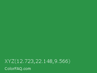 XYZ 12.723,22.148,9.566 Color is a normal green color and the nearest color is Sea Green #2e8b57. Hex code #2b9447 and RGB value is rgb(43,148,71). In RGB color space, this color is composed of 17% red, 58% green, 28% blue, In CMYK color space, this color is composed of 71% cyan, 0% magenta, 52% yellow , 42% black , In HSL color space, this color has a hue angle of 136° , 55% saturation and 37% lightness.
