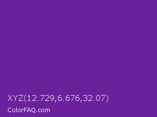 XYZ 12.729,6.676,32.07 Color is a normal purple color and the nearest color is Seance #731e8f. Hex code #6c219c and RGB value is rgb(108,33,156). In RGB color space, this color is composed of 42% red, 13% green, 61% blue, In CMYK color space, this color is composed of 31% cyan, 79% magenta, 0% yellow , 39% black , In HSL color space, this color has a hue angle of 277° , 65% saturation and 37% lightness.