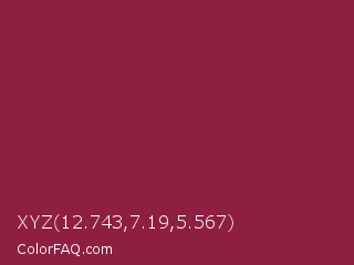 XYZ 12.743,7.19,5.567 Color is a normal rose color and the nearest color is Big Dip O Ruby #9c2542. Hex code #8f1f40 and RGB value is rgb(143,31,64). In RGB color space, this color is composed of 56% red, 12% green, 25% blue, In CMYK color space, this color is composed of 0% cyan, 78% magenta, 55% yellow , 44% black , In HSL color space, this color has a hue angle of 342° , 64% saturation and 34% lightness.
