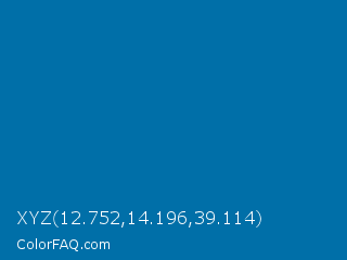 XYZ 12.752,14.196,39.114 Color is a normal blue color and the nearest color is Honolulu Blue #006db0. Hex code #006fa8 and RGB value is rgb(0,111,168). In RGB color space, this color is composed of 0% red, 44% green, 66% blue, In CMYK color space, this color is composed of 100% cyan, 34% magenta, 0% yellow , 34% black , In HSL color space, this color has a hue angle of 200° , 100% saturation and 33% lightness.