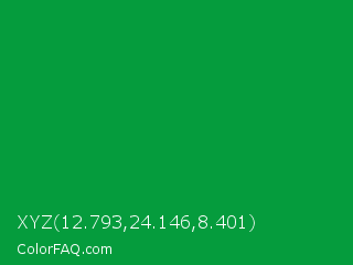 XYZ 12.793,24.146,8.401 Color is a normal green color and the nearest color is North Texas Green #059033. Hex code #059c3d and RGB value is rgb(5,156,61). In RGB color space, this color is composed of 2% red, 61% green, 24% blue, In CMYK color space, this color is composed of 97% cyan, 0% magenta, 61% yellow , 39% black , In HSL color space, this color has a hue angle of 142° , 94% saturation and 32% lightness.