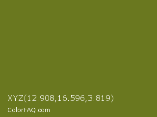 XYZ 12.908,16.596,3.819 Color is a dark yellow color and the nearest color is Fern Frond #657220. Hex code #6a781f and RGB value is rgb(106,120,31). In RGB color space, this color is composed of 42% red, 47% green, 12% blue, In CMYK color space, this color is composed of 12% cyan, 0% magenta, 74% yellow , 53% black , In HSL color space, this color has a hue angle of 69° , 59% saturation and 30% lightness.