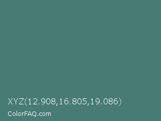 XYZ 12.908,16.805,19.086 Color is a normal cyan color and the nearest color is Faded Jade #427977. Hex code #487b74 and RGB value is rgb(72,123,116). In RGB color space, this color is composed of 28% red, 48% green, 45% blue, In CMYK color space, this color is composed of 41% cyan, 0% magenta, 6% yellow , 52% black , In HSL color space, this color has a hue angle of 172° , 26% saturation and 38% lightness.