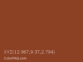 XYZ 12.967,9.37,2.794 Color is a normal orange color and the nearest color is Cumin #924321. Hex code #8c4024 and RGB value is rgb(140,64,36). In RGB color space, this color is composed of 55% red, 25% green, 14% blue, In CMYK color space, this color is composed of 0% cyan, 54% magenta, 74% yellow , 45% black , In HSL color space, this color has a hue angle of 16° , 59% saturation and 35% lightness.