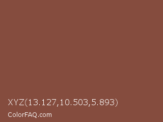 XYZ 13.127,10.503,5.893 Color is a normal red color and the nearest color is Ironstone #86483c. Hex code #854c3e and RGB value is rgb(133,76,62). In RGB color space, this color is composed of 52% red, 30% green, 24% blue, In CMYK color space, this color is composed of 0% cyan, 43% magenta, 53% yellow , 48% black , In HSL color space, this color has a hue angle of 12° , 36% saturation and 38% lightness.