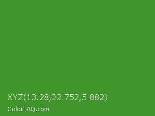 XYZ 13.28,22.752,5.882 Color is a normal green color and the nearest color is May Green #4c9141. Hex code #40952a and RGB value is rgb(64,149,42). In RGB color space, this color is composed of 25% red, 58% green, 16% blue, In CMYK color space, this color is composed of 57% cyan, 0% magenta, 72% yellow , 42% black , In HSL color space, this color has a hue angle of 108° , 56% saturation and 37% lightness.