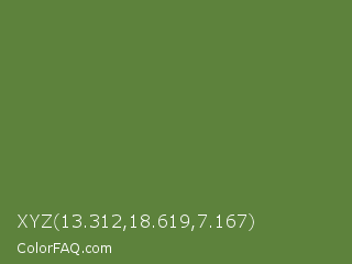 XYZ 13.312,18.619,7.167 Color is a normal green color and the nearest color is Maximum Green #5e8c31. Hex code #5d823c and RGB value is rgb(93,130,60). In RGB color space, this color is composed of 36% red, 51% green, 24% blue, In CMYK color space, this color is composed of 28% cyan, 0% magenta, 54% yellow , 49% black , In HSL color space, this color has a hue angle of 92° , 37% saturation and 37% lightness.