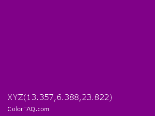 XYZ 13.357,6.388,23.822 Color is a dark magenta color and the nearest color is Patriarch #800080. Hex code #800188 and RGB value is rgb(128,1,136). In RGB color space, this color is composed of 50% red, 0% green, 53% blue, In CMYK color space, this color is composed of 6% cyan, 99% magenta, 0% yellow , 47% black , In HSL color space, this color has a hue angle of 296° , 99% saturation and 27% lightness.