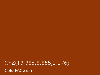 XYZ 13.385,8.855,1.176 Color is a dark orange color and the nearest color is Oregon #9b4703. Hex code #933606 and RGB value is rgb(147,54,6). In RGB color space, this color is composed of 58% red, 21% green, 2% blue, In CMYK color space, this color is composed of 0% cyan, 63% magenta, 96% yellow , 42% black , In HSL color space, this color has a hue angle of 20° , 92% saturation and 30% lightness.