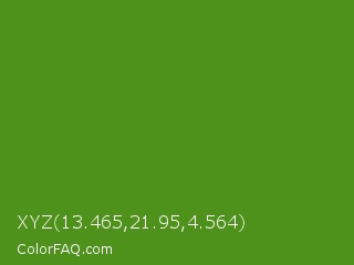 XYZ 13.465,21.95,4.564 Color is a normal green color and the nearest color is Vida Loca #549019. Hex code #4e911b and RGB value is rgb(78,145,27). In RGB color space, this color is composed of 31% red, 57% green, 11% blue, In CMYK color space, this color is composed of 46% cyan, 0% magenta, 81% yellow , 43% black , In HSL color space, this color has a hue angle of 94° , 69% saturation and 34% lightness.