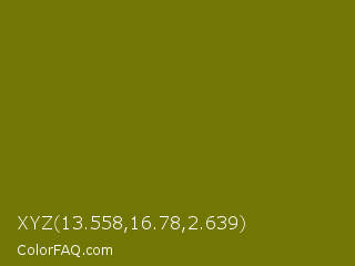 XYZ 13.558,16.78,2.639 Color is a dark yellow color and the nearest color is Bronze Yellow #737000. Hex code #727704 and RGB value is rgb(114,119,4). In RGB color space, this color is composed of 45% red, 47% green, 2% blue, In CMYK color space, this color is composed of 4% cyan, 0% magenta, 97% yellow , 53% black , In HSL color space, this color has a hue angle of 63° , 93% saturation and 24% lightness.