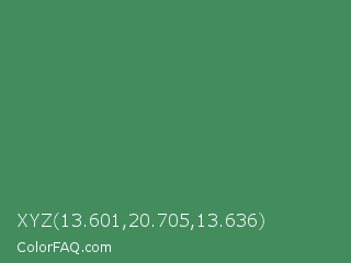 XYZ 13.601,20.705,13.636 Color is a normal green color and the nearest color is Middle Green #4d8c57. Hex code #428c5d and RGB value is rgb(66,140,93). In RGB color space, this color is composed of 26% red, 55% green, 36% blue, In CMYK color space, this color is composed of 53% cyan, 0% magenta, 34% yellow , 45% black , In HSL color space, this color has a hue angle of 142° , 36% saturation and 40% lightness.