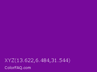 XYZ 13.622,6.484,31.544 Color is a normal purple color and the nearest color is Purple #660099. Hex code #77099b and RGB value is rgb(119,9,155). In RGB color space, this color is composed of 47% red, 4% green, 61% blue, In CMYK color space, this color is composed of 23% cyan, 94% magenta, 0% yellow , 39% black , In HSL color space, this color has a hue angle of 285° , 89% saturation and 32% lightness.