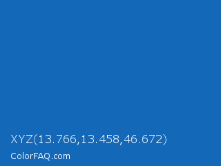 XYZ 13.766,13.458,46.672 Color is a normal blue color and the nearest color is Green Blue #1164b4. Hex code #1368b7 and RGB value is rgb(19,104,183). In RGB color space, this color is composed of 7% red, 41% green, 72% blue, In CMYK color space, this color is composed of 90% cyan, 43% magenta, 0% yellow , 28% black , In HSL color space, this color has a hue angle of 209° , 81% saturation and 40% lightness.