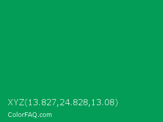 XYZ 13.827,24.828,13.08 Color is a normal green color and the nearest color is Shamrock Green #009e60. Hex code #049d57 and RGB value is rgb(4,157,87). In RGB color space, this color is composed of 2% red, 62% green, 34% blue, In CMYK color space, this color is composed of 97% cyan, 0% magenta, 45% yellow , 38% black , In HSL color space, this color has a hue angle of 153° , 95% saturation and 32% lightness.