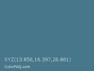 XYZ 13.856,16.397,26.861 Color is a normal blue color and the nearest color is Bismark #497183. Hex code #47778b and RGB value is rgb(71,119,139). In RGB color space, this color is composed of 28% red, 47% green, 55% blue, In CMYK color space, this color is composed of 49% cyan, 14% magenta, 0% yellow , 45% black , In HSL color space, this color has a hue angle of 198° , 32% saturation and 41% lightness.