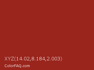 XYZ 14.02,8.184,2.003 Color is a normal red color and the nearest color is Vivid Auburn #922724. Hex code #99251d and RGB value is rgb(153,37,29). In RGB color space, this color is composed of 60% red, 15% green, 11% blue, In CMYK color space, this color is composed of 0% cyan, 76% magenta, 81% yellow , 40% black , In HSL color space, this color has a hue angle of 4° , 68% saturation and 36% lightness.