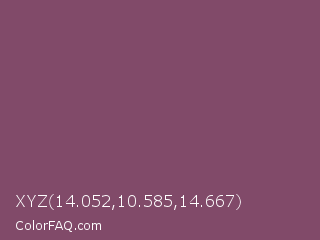 XYZ 14.052,10.585,14.667 Color is a normal magenta color and the nearest color is Twilight Lavender #8a496b. Hex code #814a69 and RGB value is rgb(129,74,105). In RGB color space, this color is composed of 51% red, 29% green, 41% blue, In CMYK color space, this color is composed of 0% cyan, 43% magenta, 19% yellow , 49% black , In HSL color space, this color has a hue angle of 326° , 27% saturation and 40% lightness.