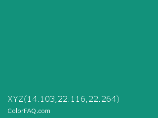 XYZ 14.103,22.116,22.264 Color is a normal cyan color and the nearest color is Gossamer #069b81. Hex code #12927b and RGB value is rgb(18,146,123). In RGB color space, this color is composed of 7% red, 57% green, 48% blue, In CMYK color space, this color is composed of 88% cyan, 0% magenta, 16% yellow , 43% black , In HSL color space, this color has a hue angle of 169° , 78% saturation and 32% lightness.