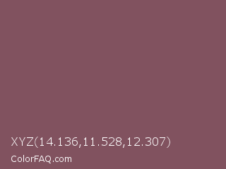 XYZ 14.136,11.528,12.307 Color is a normal rose color and the nearest color is Deep Taupe #7e5e60. Hex code #81525f and RGB value is rgb(129,82,95). In RGB color space, this color is composed of 51% red, 32% green, 37% blue, In CMYK color space, this color is composed of 0% cyan, 36% magenta, 26% yellow , 49% black , In HSL color space, this color has a hue angle of 343° , 22% saturation and 41% lightness.