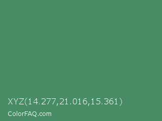 XYZ 14.277,21.016,15.361 Color is a normal green color and the nearest color is Middle Green #4d8c57. Hex code #478c64 and RGB value is rgb(71,140,100). In RGB color space, this color is composed of 28% red, 55% green, 39% blue, In CMYK color space, this color is composed of 49% cyan, 0% magenta, 29% yellow , 45% black , In HSL color space, this color has a hue angle of 145° , 33% saturation and 41% lightness.