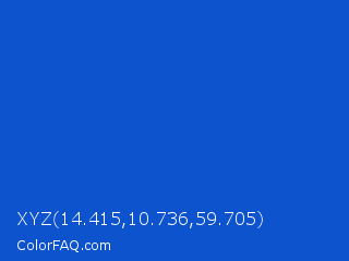XYZ 14.415,10.736,59.705 Color is a normal blue color and the nearest color is Sapphire #0f52ba. Hex code #0e53ce and RGB value is rgb(14,83,206). In RGB color space, this color is composed of 5% red, 33% green, 81% blue, In CMYK color space, this color is composed of 93% cyan, 60% magenta, 0% yellow , 19% black , In HSL color space, this color has a hue angle of 218° , 87% saturation and 43% lightness.