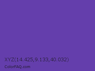 XYZ 14.425,9.133,40.032 Color is a normal violet color and the nearest color is Royal Purple #6b3fa0. Hex code #643eac and RGB value is rgb(100,62,172). In RGB color space, this color is composed of 39% red, 24% green, 67% blue, In CMYK color space, this color is composed of 42% cyan, 64% magenta, 0% yellow , 33% black , In HSL color space, this color has a hue angle of 261° , 47% saturation and 46% lightness.