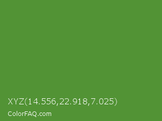 XYZ 14.556,22.918,7.025 Color is a normal green color and the nearest color is May Green #4c9141. Hex code #529335 and RGB value is rgb(82,147,53). In RGB color space, this color is composed of 32% red, 58% green, 21% blue, In CMYK color space, this color is composed of 44% cyan, 0% magenta, 64% yellow , 42% black , In HSL color space, this color has a hue angle of 101° , 47% saturation and 39% lightness.