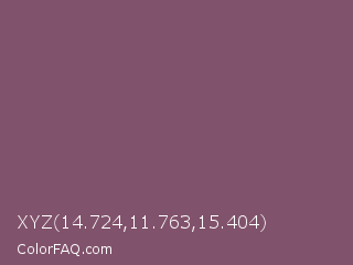 XYZ 14.724,11.763,15.404 Color is a normal rose color and the nearest color is Twilight Lavender #8a496b. Hex code #81526b and RGB value is rgb(129,82,107). In RGB color space, this color is composed of 51% red, 32% green, 42% blue, In CMYK color space, this color is composed of 0% cyan, 36% magenta, 17% yellow , 49% black , In HSL color space, this color has a hue angle of 328° , 22% saturation and 41% lightness.