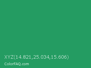 XYZ 14.821,25.034,15.606 Color is a normal green color and the nearest color is Eucalyptus #278a5b. Hex code #249c62 and RGB value is rgb(36,156,98). In RGB color space, this color is composed of 14% red, 61% green, 38% blue, In CMYK color space, this color is composed of 77% cyan, 0% magenta, 37% yellow , 39% black , In HSL color space, this color has a hue angle of 151° , 63% saturation and 38% lightness.