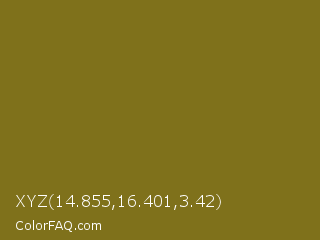 XYZ 14.855,16.401,3.42 Color is a dark yellow color and the nearest color is Olivetone #716e10. Hex code #7f711b and RGB value is rgb(127,113,27). In RGB color space, this color is composed of 50% red, 44% green, 11% blue, In CMYK color space, this color is composed of 0% cyan, 11% magenta, 79% yellow , 50% black , In HSL color space, this color has a hue angle of 52° , 65% saturation and 30% lightness.