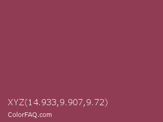 XYZ 14.933,9.907,9.72 Color is a normal rose color and the nearest color is Quinacridone Magenta #8e3a59. Hex code #913c55 and RGB value is rgb(145,60,85). In RGB color space, this color is composed of 57% red, 24% green, 33% blue, In CMYK color space, this color is composed of 0% cyan, 59% magenta, 41% yellow , 43% black , In HSL color space, this color has a hue angle of 342° , 41% saturation and 40% lightness.