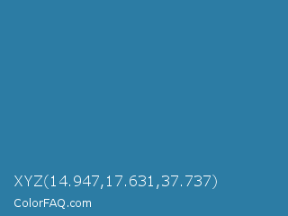 XYZ 14.947,17.631,37.737 Color is a normal blue color and the nearest color is Astral #327da0. Hex code #2c7ca4 and RGB value is rgb(44,124,164). In RGB color space, this color is composed of 17% red, 49% green, 64% blue, In CMYK color space, this color is composed of 73% cyan, 24% magenta, 0% yellow , 36% black , In HSL color space, this color has a hue angle of 200° , 58% saturation and 41% lightness.