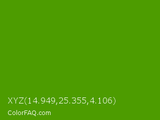 XYZ 14.949,25.355,4.106 Color is a normal green color and the nearest color is Avocado #568203. Hex code #4d9c00 and RGB value is rgb(77,156,0). In RGB color space, this color is composed of 30% red, 61% green, 0% blue, In CMYK color space, this color is composed of 51% cyan, 0% magenta, 100% yellow , 39% black , In HSL color space, this color has a hue angle of 90° , 100% saturation and 31% lightness.