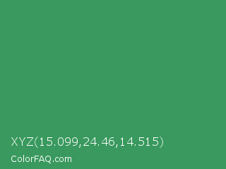 XYZ 15.099,24.46,14.515 Color is a normal green color and the nearest color is Chateau Green #40a860. Hex code #39995e and RGB value is rgb(57,153,94). In RGB color space, this color is composed of 22% red, 60% green, 37% blue, In CMYK color space, this color is composed of 63% cyan, 0% magenta, 39% yellow , 40% black , In HSL color space, this color has a hue angle of 143° , 46% saturation and 41% lightness.