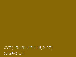 XYZ 15.131,15.146,2.27 Color is a dark orange color and the nearest color is Corn Harvest #8b6b0b. Hex code #886805 and RGB value is rgb(136,104,5). In RGB color space, this color is composed of 53% red, 41% green, 2% blue, In CMYK color space, this color is composed of 0% cyan, 24% magenta, 96% yellow , 47% black , In HSL color space, this color has a hue angle of 45° , 93% saturation and 28% lightness.