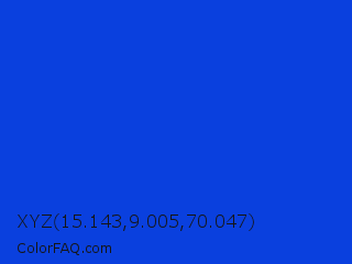 XYZ 15.143,9.005,70.047 Color is a normal blue color and the nearest color is Palatinate Blue #273be2. Hex code #0a40de and RGB value is rgb(10,64,222). In RGB color space, this color is composed of 4% red, 25% green, 87% blue, In CMYK color space, this color is composed of 95% cyan, 71% magenta, 0% yellow , 13% black , In HSL color space, this color has a hue angle of 225° , 91% saturation and 45% lightness.