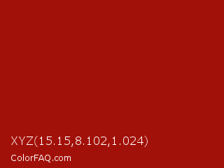 XYZ 15.15,8.102,1.024 Color is a normal red color and the nearest color is Rufous #a81c07. Hex code #a21109 and RGB value is rgb(162,17,9). In RGB color space, this color is composed of 64% red, 7% green, 4% blue, In CMYK color space, this color is composed of 0% cyan, 90% magenta, 94% yellow , 36% black , In HSL color space, this color has a hue angle of 3° , 89% saturation and 34% lightness.