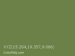 XYZ 15.204,19.357,9.066 Color is a normal green color and the nearest color is Dingley #5d7747. Hex code #6c8148 and RGB value is rgb(108,129,72). In RGB color space, this color is composed of 42% red, 51% green, 28% blue, In CMYK color space, this color is composed of 16% cyan, 0% magenta, 44% yellow , 49% black , In HSL color space, this color has a hue angle of 82° , 28% saturation and 39% lightness.