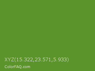 XYZ 15.322,23.571,5.933 Color is a normal green color and the nearest color is Maximum Green #5e8c31. Hex code #5b942a and RGB value is rgb(91,148,42). In RGB color space, this color is composed of 36% red, 58% green, 16% blue, In CMYK color space, this color is composed of 39% cyan, 0% magenta, 72% yellow , 42% black , In HSL color space, this color has a hue angle of 92° , 56% saturation and 37% lightness.