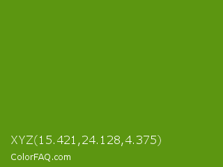 XYZ 15.421,24.128,4.375 Color is a normal green color and the nearest color is Vida Loca #549019. Hex code #5c9611 and RGB value is rgb(92,150,17). In RGB color space, this color is composed of 36% red, 59% green, 7% blue, In CMYK color space, this color is composed of 39% cyan, 0% magenta, 89% yellow , 41% black , In HSL color space, this color has a hue angle of 86° , 80% saturation and 33% lightness.