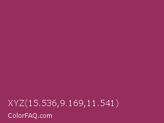XYZ 15.536,9.169,11.541 Color is a normal rose color and the nearest color is Amaranth Deep Purple #9f2b68. Hex code #962d5e and RGB value is rgb(150,45,94). In RGB color space, this color is composed of 59% red, 18% green, 37% blue, In CMYK color space, this color is composed of 0% cyan, 70% magenta, 37% yellow , 41% black , In HSL color space, this color has a hue angle of 332° , 54% saturation and 38% lightness.