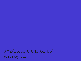 XYZ 15.55,8.845,61.86 Color is a normal indigo color and the nearest color is Iris #5a4fcf. Hex code #4539d2 and RGB value is rgb(69,57,210). In RGB color space, this color is composed of 27% red, 22% green, 82% blue, In CMYK color space, this color is composed of 67% cyan, 73% magenta, 0% yellow , 18% black , In HSL color space, this color has a hue angle of 245° , 63% saturation and 52% lightness.