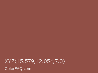 XYZ 15.579,12.054,7.3 Color is a normal red color and the nearest color is Copper Rust #944747. Hex code #914f46 and RGB value is rgb(145,79,70). In RGB color space, this color is composed of 57% red, 31% green, 27% blue, In CMYK color space, this color is composed of 0% cyan, 46% magenta, 52% yellow , 43% black , In HSL color space, this color has a hue angle of 7° , 35% saturation and 42% lightness.