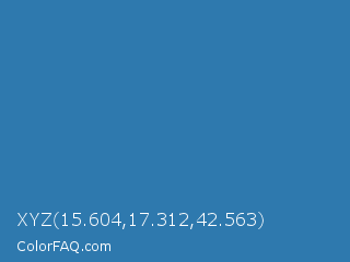 XYZ 15.604,17.312,42.563 Color is a normal blue color and the nearest color is Astral #327da0. Hex code #2e79ae and RGB value is rgb(46,121,174). In RGB color space, this color is composed of 18% red, 47% green, 68% blue, In CMYK color space, this color is composed of 74% cyan, 30% magenta, 0% yellow , 32% black , In HSL color space, this color has a hue angle of 205° , 58% saturation and 43% lightness.