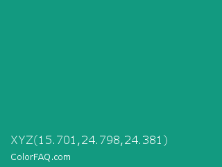 XYZ 15.701,24.798,24.381 Color is a normal cyan color and the nearest color is Gossamer #069b81. Hex code #129a80 and RGB value is rgb(18,154,128). In RGB color space, this color is composed of 7% red, 60% green, 50% blue, In CMYK color space, this color is composed of 88% cyan, 0% magenta, 17% yellow , 40% black , In HSL color space, this color has a hue angle of 169° , 79% saturation and 34% lightness.