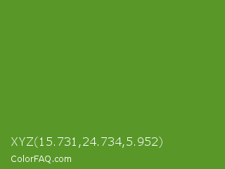 XYZ 15.731,24.734,5.952 Color is a normal green color and the nearest color is Maximum Green #5e8c31. Hex code #599828 and RGB value is rgb(89,152,40). In RGB color space, this color is composed of 35% red, 60% green, 16% blue, In CMYK color space, this color is composed of 41% cyan, 0% magenta, 74% yellow , 40% black , In HSL color space, this color has a hue angle of 94° , 58% saturation and 38% lightness.