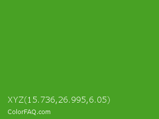 XYZ 15.736,26.995,6.05 Color is a normal green color and the nearest color is Vida Loca #549019. Hex code #48a124 and RGB value is rgb(72,161,36). In RGB color space, this color is composed of 28% red, 63% green, 14% blue, In CMYK color space, this color is composed of 55% cyan, 0% magenta, 78% yellow , 37% black , In HSL color space, this color has a hue angle of 103° , 63% saturation and 39% lightness.